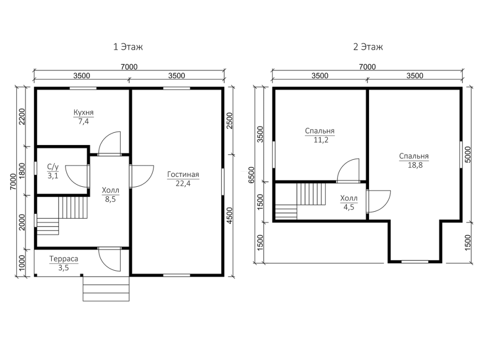 Сруб с мансардой: 1-ый этаж- 2,5 м. (18 венцов) 2-ой этаж (мансарда)- 2,4 м. Сруб в полтора и два этажа: 1-ый этаж 2,5 м ±4 см. (18 венцов) 2-ой этаж 2,5 м ±4 см. каркасные аттиковые стены (боковые) высотой 1,5 м. в полутораэтажном доме 2,5 м ±4 см (поднят брусом на 18 венцов) в двухэтажном доме. |