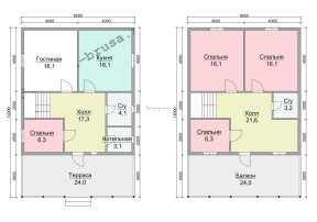 | Терраса/балкон (при наличии) | Устанавливаются опорные столбы из строганного бруса камерной сушки 140х140 мм. | |